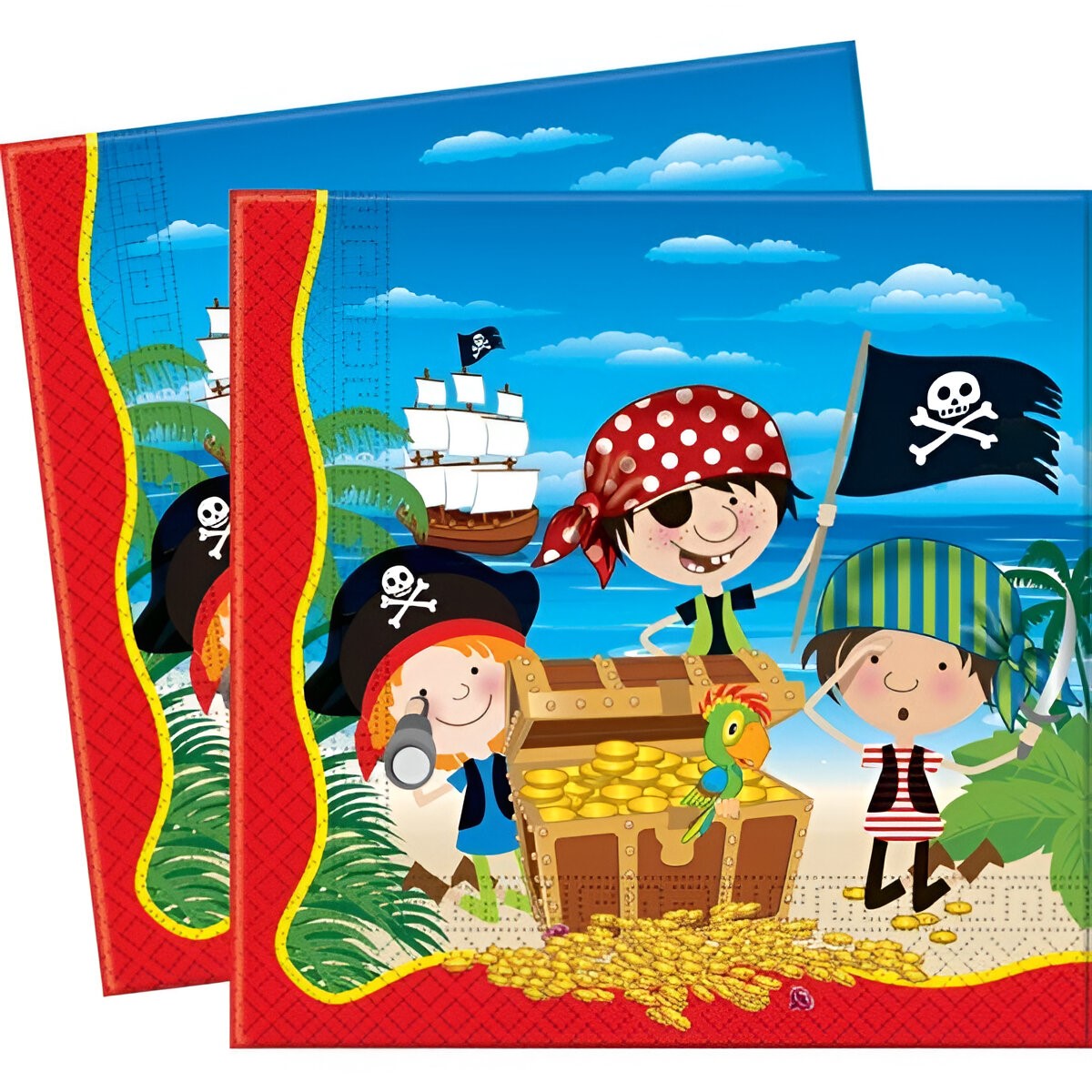 Χαρτοπετσέτες φαγητού με σχέδιο πειρατές για το τραπέζι του θεματικού πάρτυ.