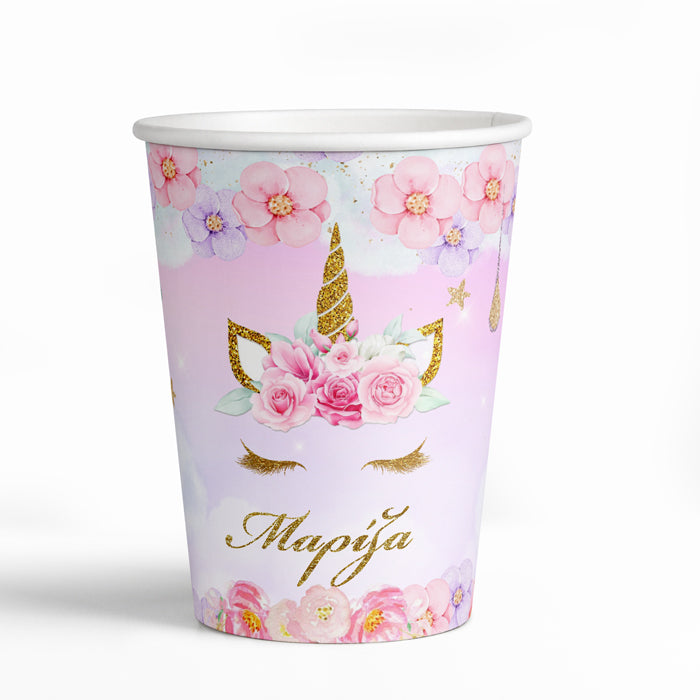 Ποτηράκια με όμορφο μονόκερο και εκτυπωμένο το όνομα της μικρής σας, για μία εντυπωσιακή διακόσμηση στο γιορτινό μπουφέ!
