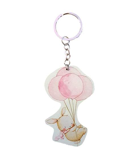 Διακοσμητικό μπρελόκ βάπτισης Κουνελάκι με μπαλόνια. Πρωτότυπο δωράκι για τους καλεσμένους της Βάπτισης, το οποίο χρησιμοποιείται και ως διακοσμητικό για την μπομπονιέρα!