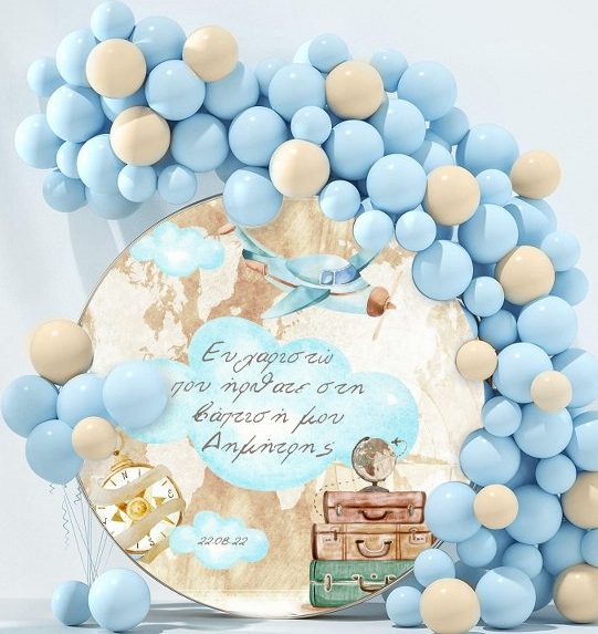 Στρογγυλή αφίσα με θέμα τα Ταξίδια και εκτυπωμένο το μήνυμα που θέλετε, για να διακοσμήσετε το χώρο της βάπτισης του μωρού σας!