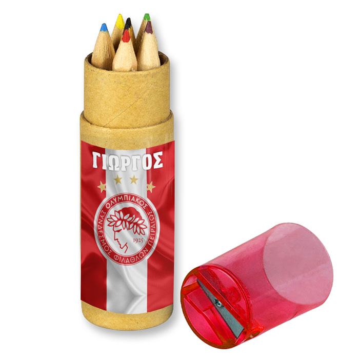 Χαρίστε στους μικρούς καλεσμένους του πάρτι, ένα δωράκι με ξυλομπογιές Ολυμπιακός! Μπορεί να τυπωθεί επάνω το όνομα του παιδιού!