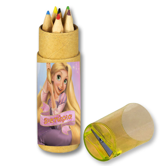 Χαρίστε στους μικρούς καλεσμένους του πάρτι, ένα δωράκι με ξυλομπογιές Πριγκίπισσα Ραπουνζελ! Μπορεί να τυπωθεί επάνω το όνομα του παιδιού!