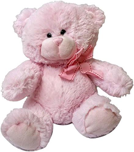 Χνουδωτό Ροζ Αρκουδάκι με ροζ κορδέλα στο λαιμό ιδανικό για νεογέννητο κοριτσάκι.