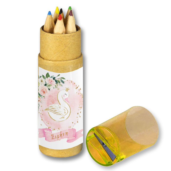 Προσωποποιημένες ξυλομπογιές σε κραφτ κουτάκι με θέμα Κύκνο, για να χαρίσετε στους καλεσμένους ως μπομπονιέρα ή ως δωράκι στα παιδάκια της βάπτισης!