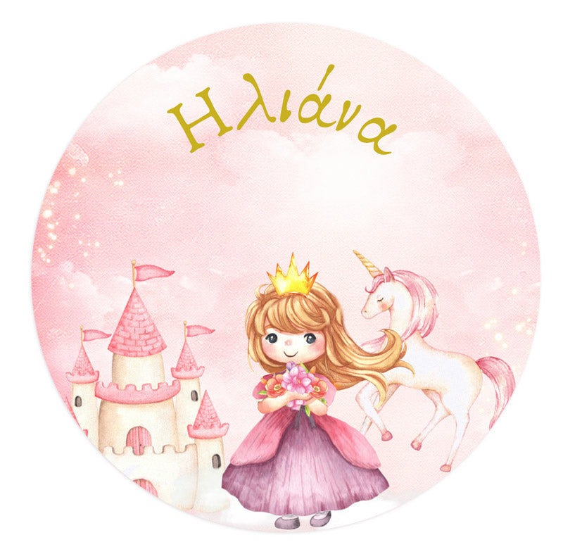 Στρογγυλή αφίσα από μουσαμά με θέμα την Πριγκίπισσα, για να διακοσμήσετε το χώρο της βάπτισης του μωρού σας!