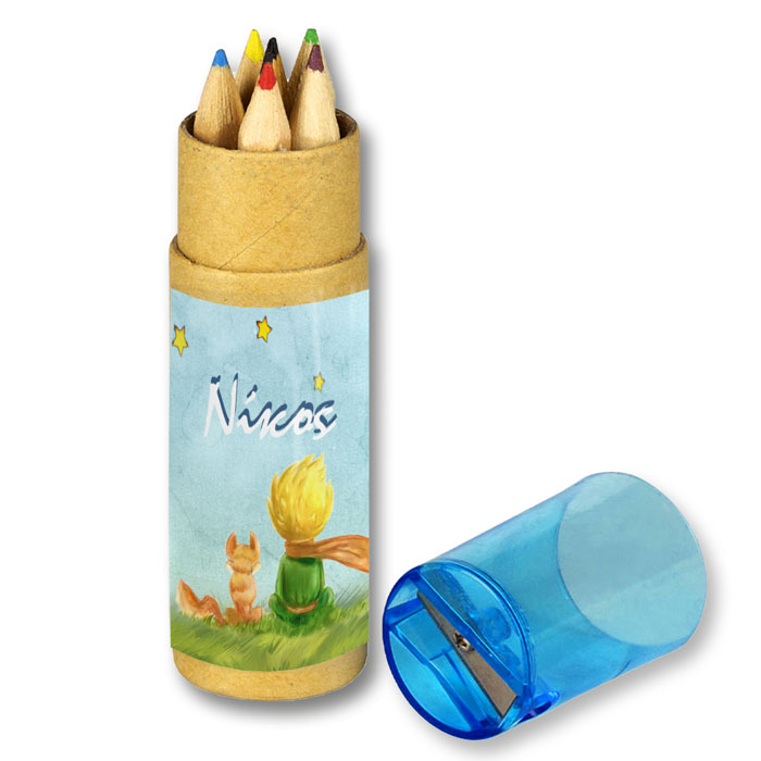 Προσωποποιημένες ξυλομπογιές σε κραφτ κουτάκι με θέμα το Μικρό Πρίγκιπα, για να χαρίσετε στους καλεσμένους ως μπομπονιέρα ή στα παιδάκια της βάπτισης ή του πάρτυ.