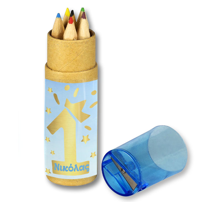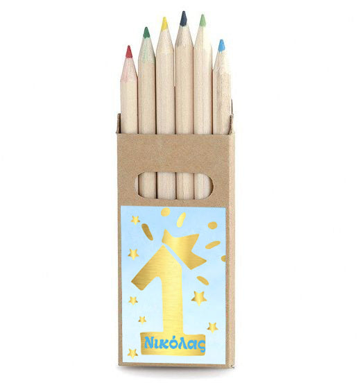 Προσωποποιημένες ξυλομπογιές σε κραφτ κουτάκι 1st Birthday Boy, για να χαρίσετε στους καλεσμένους του πάρτυ.
