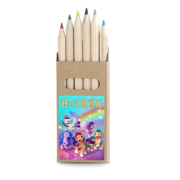 Προσωποποιημένες ξυλομπογιές Πόνυ σε κραφτ κουτάκι, για να χαρίσετε στους καλεσμένους του πάρτυ.