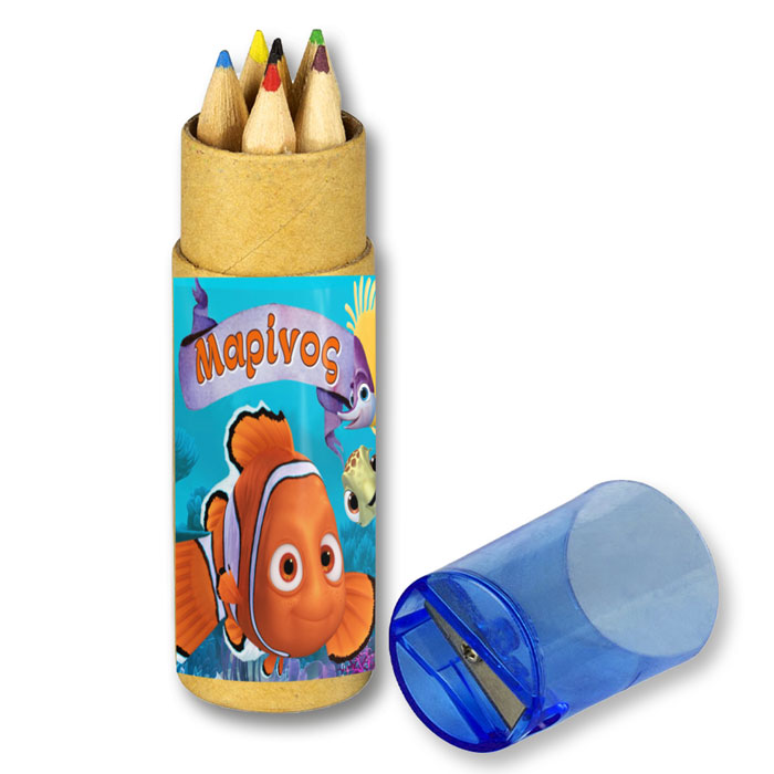 Προσωποποιημένες ξυλομπογιές σε κραφτ κουτάκι με θέμα το αγαπημένο ψαράκι Κλόουν, να χαρίσετε στους μικρούς καλεσμένους!