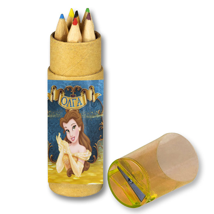 Προσωποποιημένες ξυλομπογιές σε κραφτ κουτάκι με θέμα την Πεντάμορφη, να χαρίσετε στους μικρούς καλεσμένους!