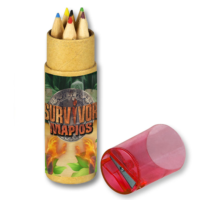 Χαρίστε στους μικρούς καλεσμένους του πάρτι, ξυλομπογιές με θέμα Survivor. Μπορεί να τυπωθεί επάνω το όνομα του παιδιού.