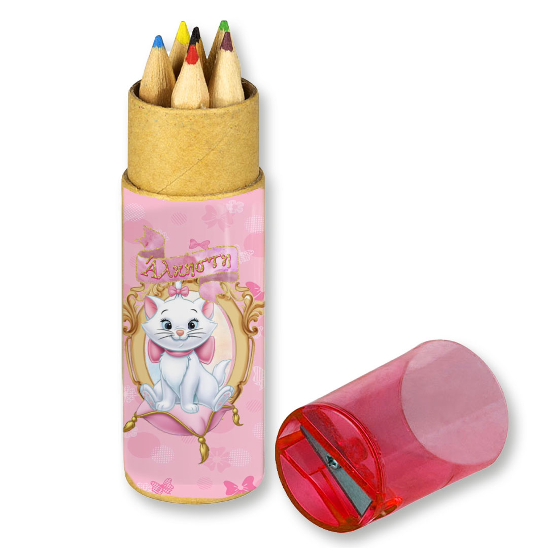 Προσωποποιημένες ξυλομπογιές σε κραφτ κουτάκι με τη γατούλα Marie από την αγαπημένη ταινία της Disney Αριστόγατες, για να χαρίσετε στους καλεσμένους του πάρτυ.