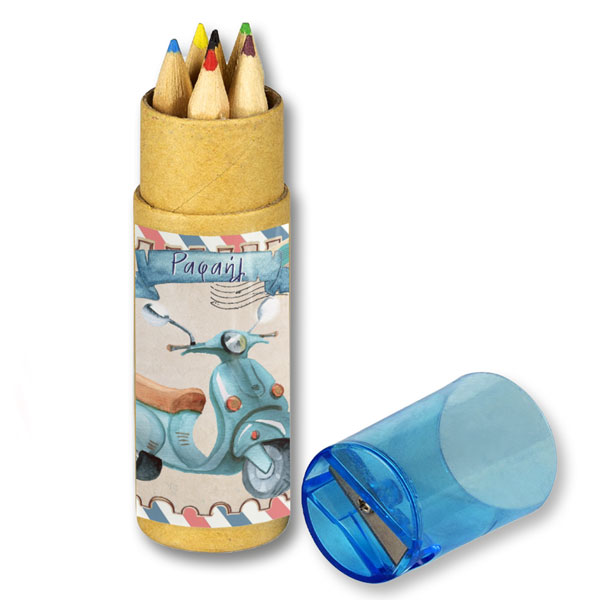 Χαρίστε στους μικρούς καλεσμένους της βάπτισης, ένα δωράκι με ξυλομπογιές στο θέμα Βέσπα. Μπορεί να τυπωθεί επάνω το όνομα του παιδιού.