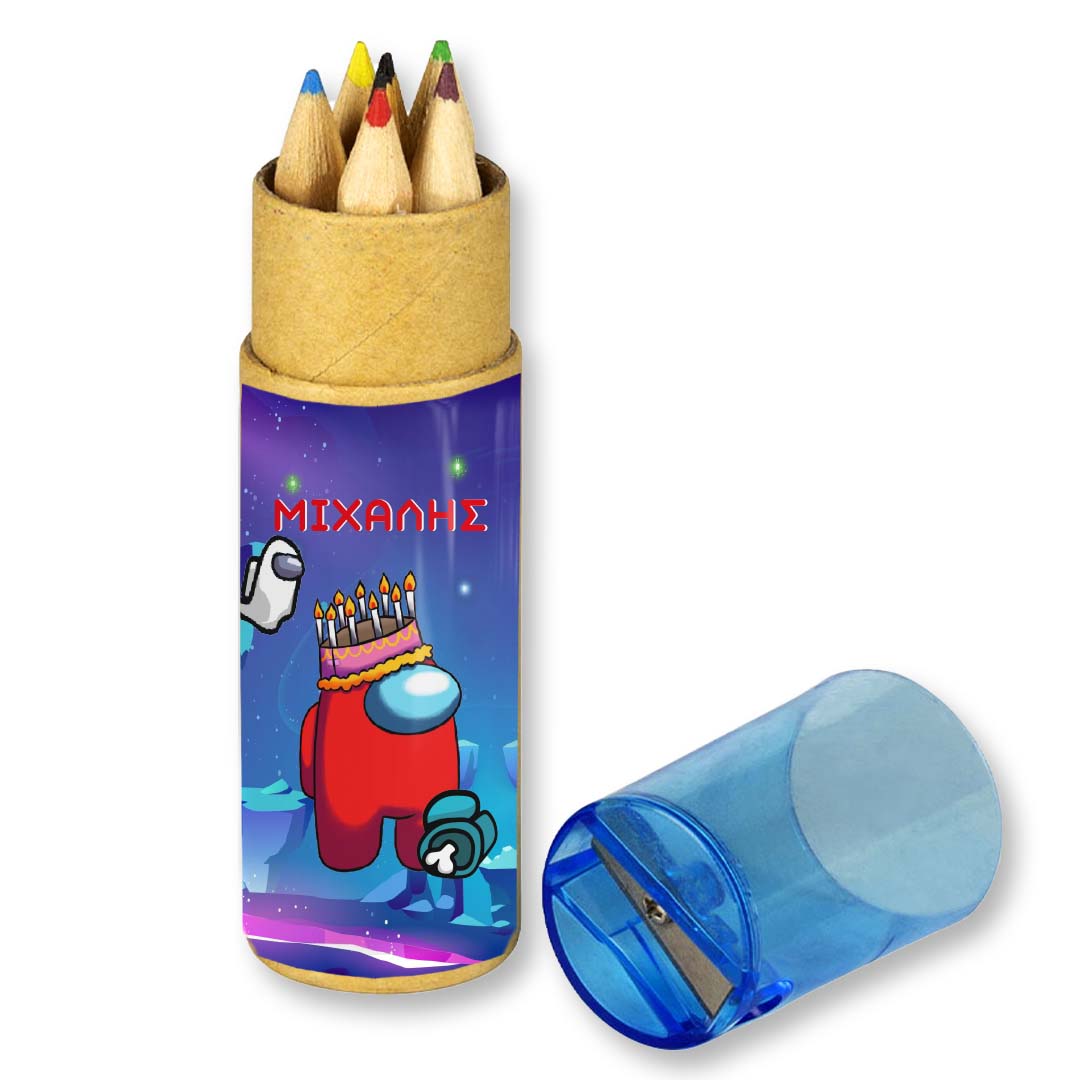 Χαρίστε στους μικρούς καλεσμένους του πάρτι, ξυλομπογιές με θέμα Among Us. Μπορεί να τυπωθεί επάνω το όνομα του παιδιού.