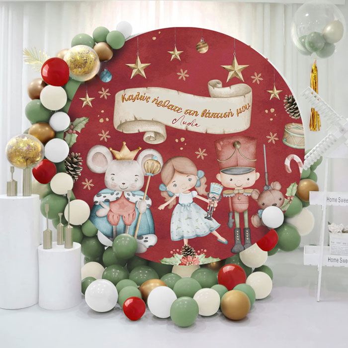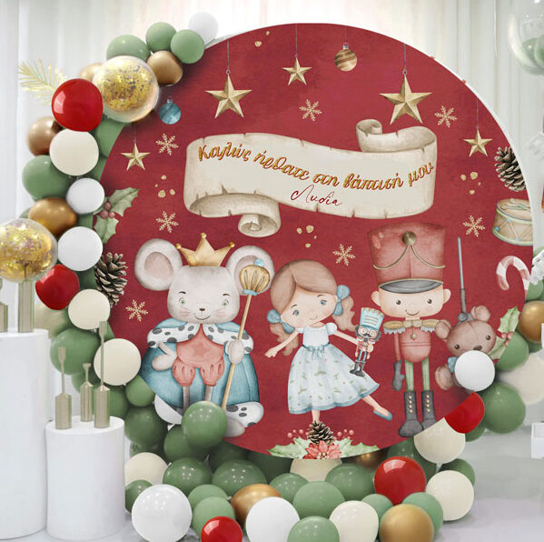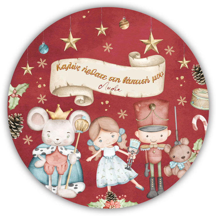 Στρογγυλή αφίσα με θέμα τον Καρυοθραύστη και εκτυπωμένο το μήνυμα που θέλετε, για να διακοσμήσετε το χώρο της βάπτισης του μωρού σας!