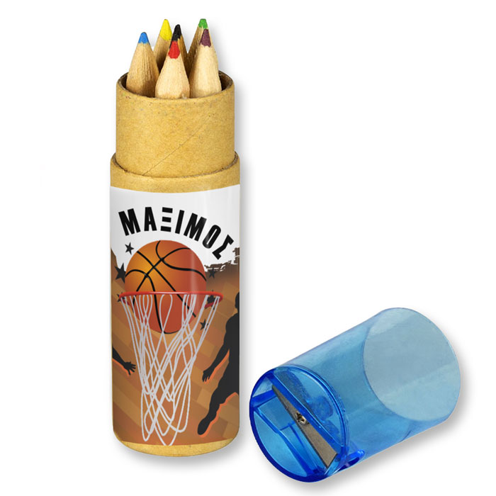 Προσωποποιημένες ξυλομπογιές σε κραφτ μολυβοθήκη με θέμα Μπάσκετ , για να χαρίσετε στους μικρούς καλεσμένους!