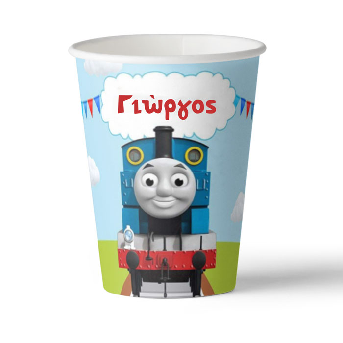 Ποτηράκια με το όνομα της επιλογής σου και θέμα τον αξιαγάπητο Τόμας το Τρενάκι, για να κεράσεις τους καλεσμένους σου στο τραπέζι του πάρτυ γενεθλίων!