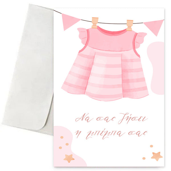 Πρωτότυπη κάρτα για να χαρίσεις και να ευχηθείς με τον πιο όμορφο τρόπο για τον ερχομό ή την Βάπτιση της μικρής Μπέμπας!