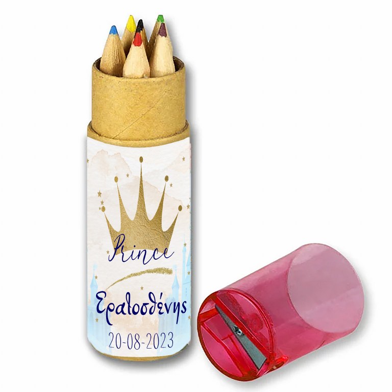 Προσωποποιημένες ξυλομπογιές σε κραφτ κουτάκι με θέμα Κορώνα για αγόρι, να χαρίσεις στους μικρούς καλεσμένους!