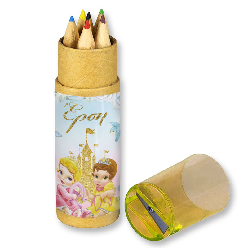 Προσωποποιημένες ξυλομπογιές σε κραφτ κουτάκι με θέμα Baby Πριγκίπισσες Disney, για να χαρίσετε στους καλεσμένους σας!