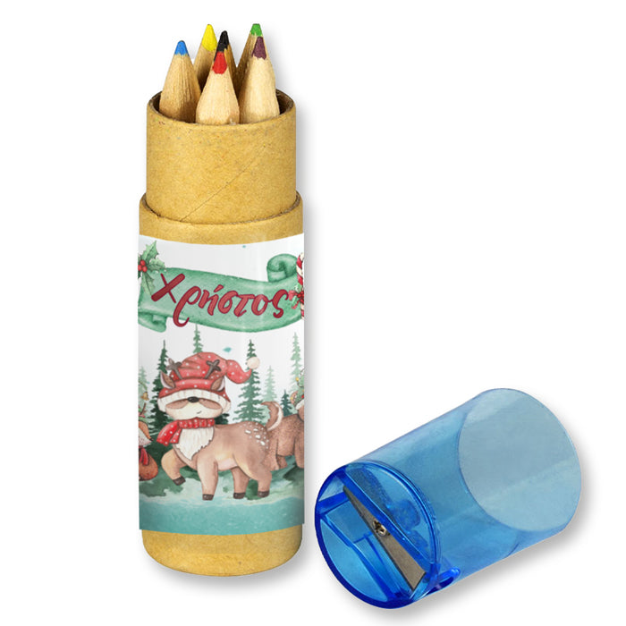 Χριστουγεννιάτικες προσωποποιημένες ξυλομπογιές σε κραφτ κουτάκι με θέμα Woodland, για να χαρίσετε στους καλεσμένους σας!