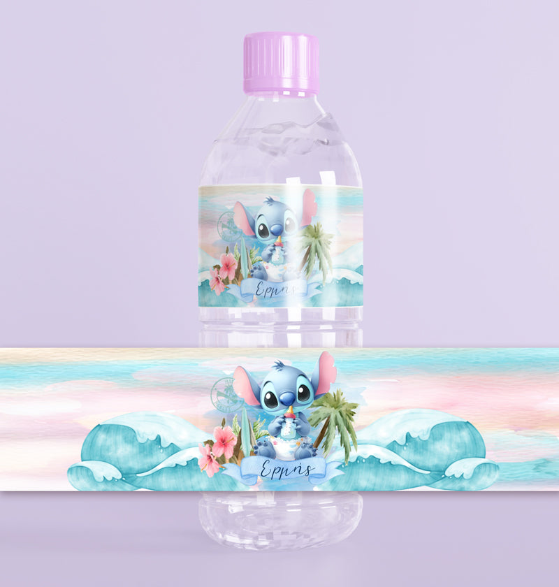 Διακοσμήστε τα μπουκαλάκια νερού με ετικέτες σε θέμα Stitch, που μπορούν να αναγράφουν το όνομα του παιδιού.