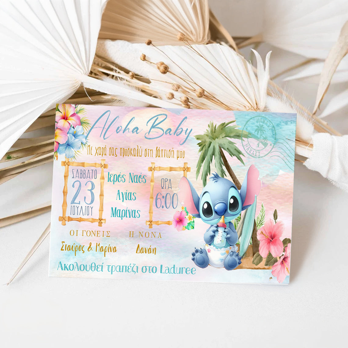 Προσκαλέστε τα αγαπημένα σας άτομα στη βάπτιση του μωρού σας με προσκλητήριο στο πιο μοδάτο θέμα Stitch!
