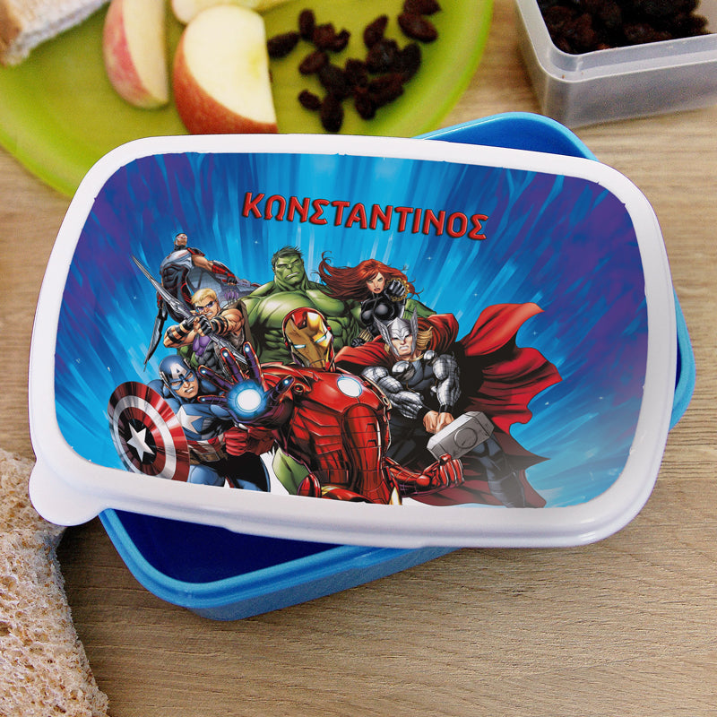 Παιδικό δοχείο φαγητού Avengers με εκτυπωμένο το όνομα του μικρού σας, ώστε να το ξεχωρίζει στο σχολείο!