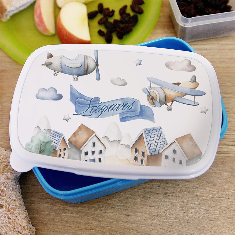 Παιδικό δοχείο φαγητού Αεροπλανάκι με εκτυπωμένο το όνομα του μικρού σας, ώστε να το ξεχωρίζει στο σχολείο!