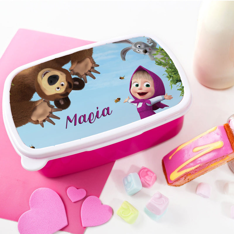 Παιδικό δοχείο φαγητού Μάσα και Αρκούδος με εκτυπωμένο το όνομα της μικρής σας, ώστε να το ξεχωρίζει στο σχολείο!