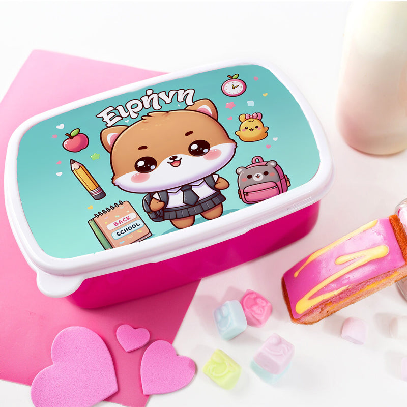 Παιδικό δοχείο φαγητού Γλυκό Γατάκι Kawaii με εκτυπωμένο το όνομα της μικρής σας, ώστε να το ξεχωρίζει στο σχολείο!
