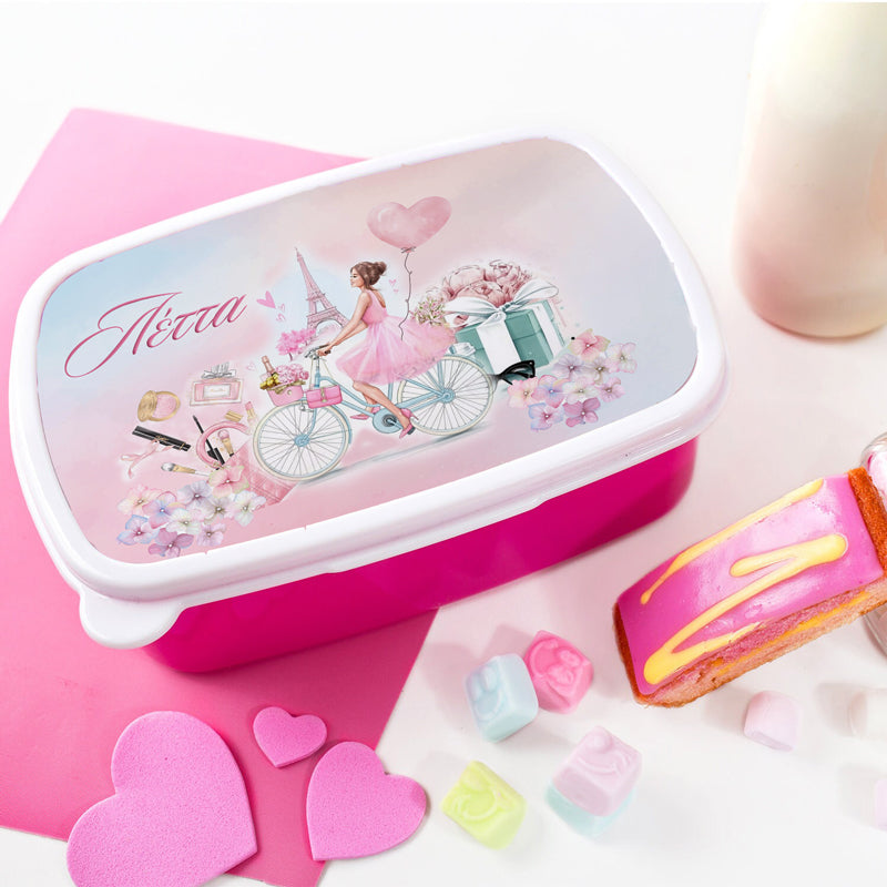 Παιδικό δοχείο φαγητού Girl in Paris με εκτυπωμένο το όνομα της μικρής σας, ώστε να το ξεχωρίζει στο σχολείο!