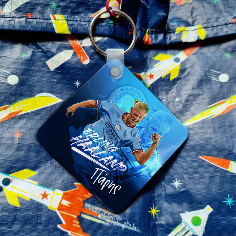 Γίνει ο πιο cool του σχολείου! Τετράγωνο μπρελόκ Erling Haaland με τυπωμένο το όνομα, για να το τοποθετήσεις στην σχολική τσάντα ή να το χρησιμοποιήσεις για τα κλειδιά σου!