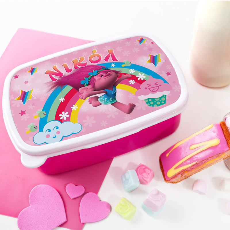 Παιδικό δοχείο φαγητού Trolls με εκτυπωμένο το όνομα της μικρής σας, ώστε να το ξεχωρίζει στο σχολείο!