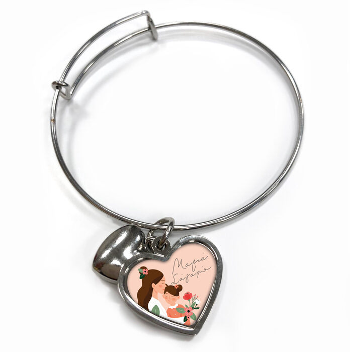 Μεταλλικό, εκτυπώσιμο βραχιόλι σε ασημί χρώμα με σχέδιο καρδιά, για να χαρίσεις στη μαμά σου και να της υπενθυμίσεις ότι την αγαπάς!