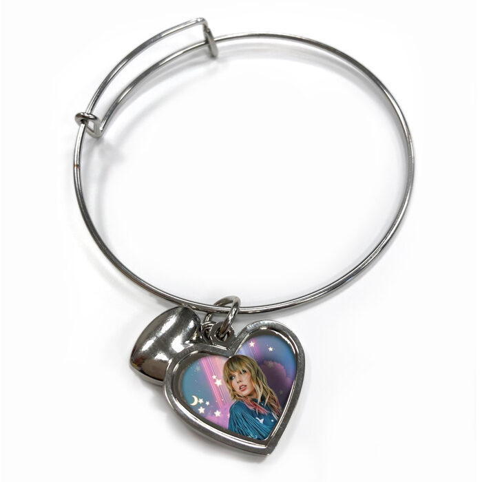 Μεταλλικό, εκτυπώσιμο βραχιόλι σε ασημί χρώμα με σχέδιο καρδιά, για να χαρίσεις στη φίλη που λατρεύει την Taylor Swift!