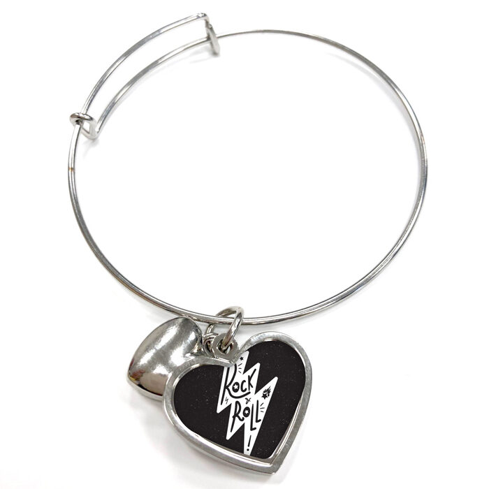 Μεταλλικό, εκτυπώσιμο βραχιόλι σε ασημί χρώμα με σχέδιο καρδιά, για να χαρίσεις στη φίλη που λατρεύει την Rock and Roll μουσική!
