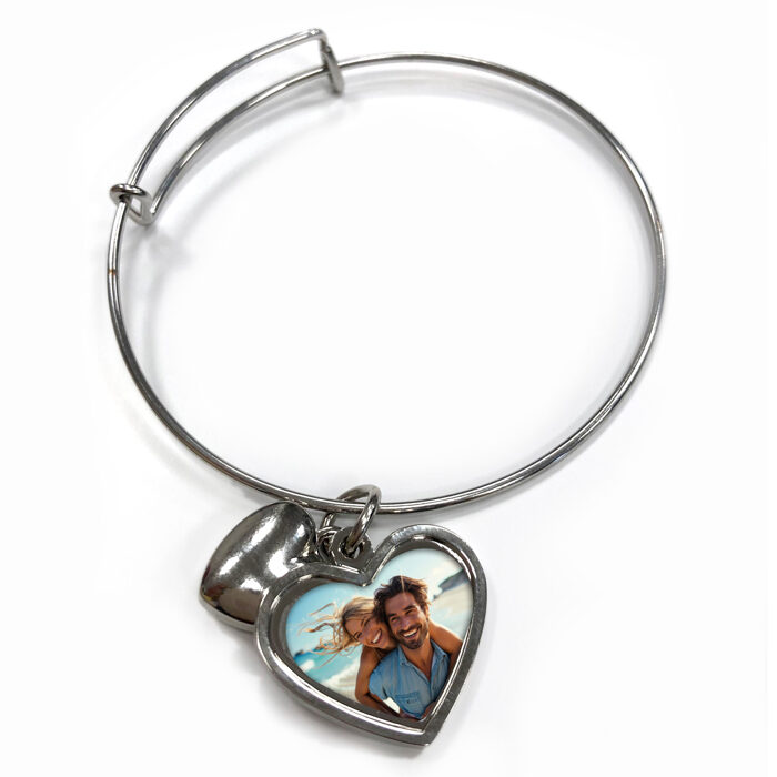 Μεταλλικό βραχιόλι σε ασημί χρώμα με σχέδιο καρδιά και φωτογραφία, μια όμορφη ιδέα για δώρο στα αγαπημένα σου πρόσωπα!