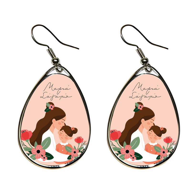 Μεταλλικά Σκουλαρίκια δάκρυ - Μαμά Σ' αγαπώ