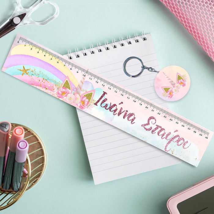 Προσωποποιημένος χάρακας Μονόκερος με το όνομα και ασορτί μπρελόκ! To πιο τέλειο αξεσουάρ για το σχολείο ή το φροντιστήριο!
