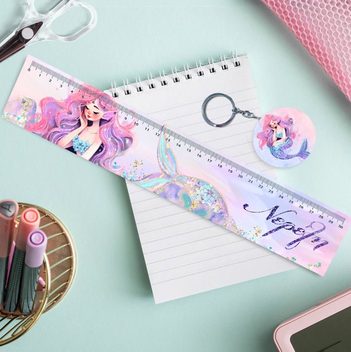 Προσωποποιημένος χάρακας Γοργόνα με το όνομα και ασορτί μπρελόκ! To πιο τέλειο αξεσουάρ για το σχολείο ή το φροντιστήριο!