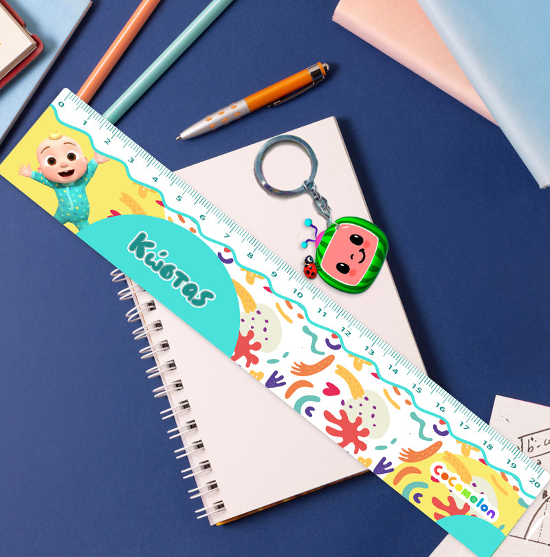 Προσωποποιημένος χάρακας Cocomelon με το όνομα και ασορτί μπρελόκ! To πιο τέλειο αξεσουάρ για το σχολείο ή το φροντιστήριο!