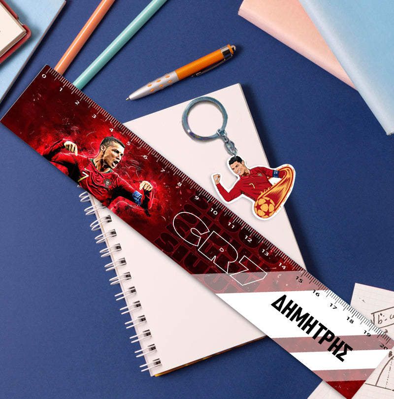 Προσωποποιημένος χάρακας Ronaldo με το όνομα και ασορτί μπρελόκ! To πιο τέλειο αξεσουάρ για το σχολείο ή το φροντιστήριο!