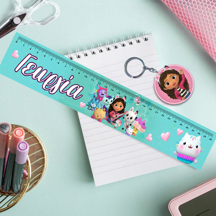 Προσωποποιημένος χάρακας Το Κουκλόσπιτο της Gabby με το όνομα και ασορτί μπρελόκ! To πιο τέλειο αξεσουάρ για το σχολείο ή το φροντιστήριο!