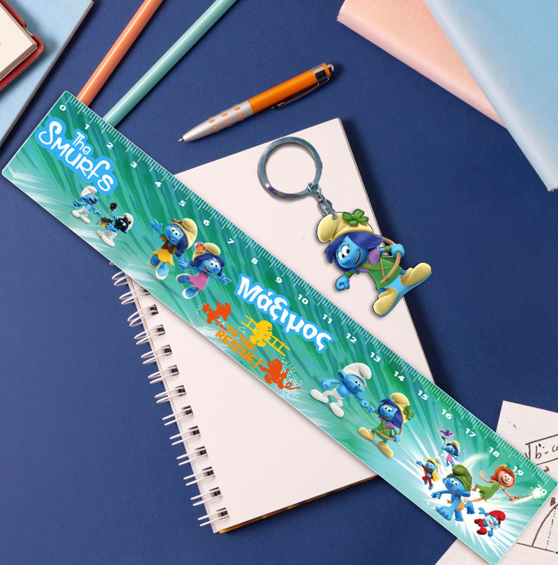 Προσωποποιημένος χάρακας Στρουμφάκια από τη νέα ταινία με το όνομα και ασορτί μπρελόκ! To πιο τέλειο αξεσουάρ για το σχολείο ή το φροντιστήριο!