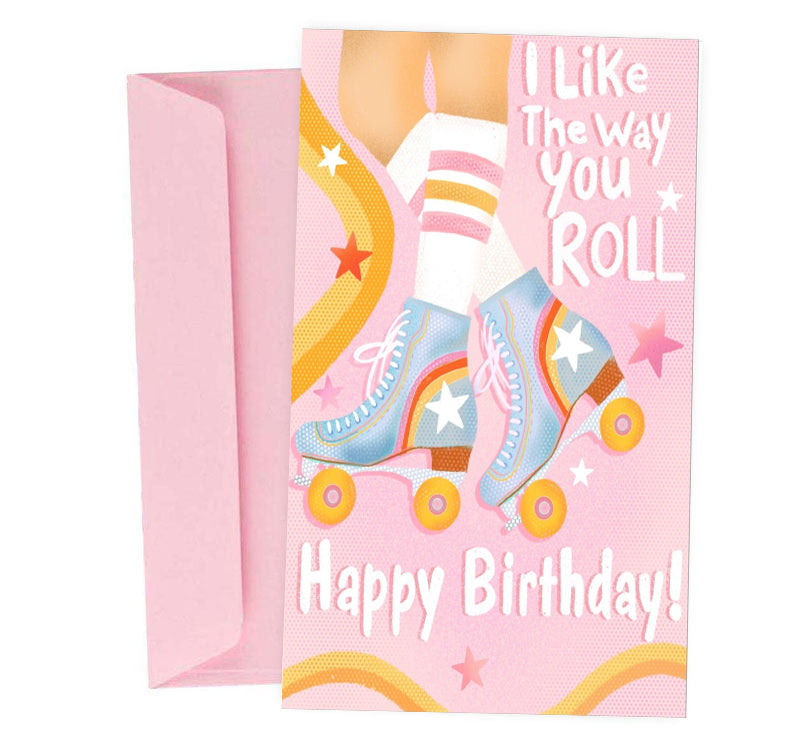 Ευχετήρια κάρτα γενεθλίων Rollers με τον διάσημο στίχο I like the way you move σε λογοπαίγνιο για να χαρίσεις στη κολλητή σου που της αρέσουν τα ρόλερς!
