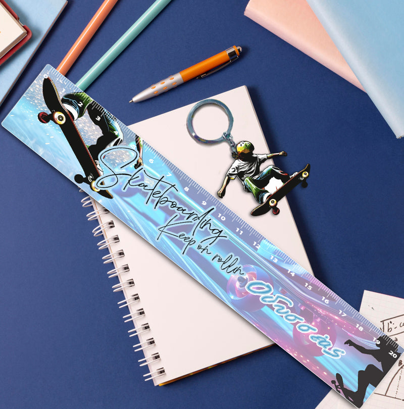 Προσωποποιημένος χάρακας Skateboard με το όνομα και ασορτί μπρελόκ! To πιο τέλειο αξεσουάρ για το σχολείο ή το φροντιστήριο!