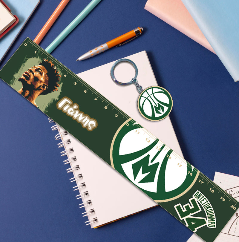 Προσωποποιημένος χάρακας Αντετοκούνμπο με το όνομα και ασορτί μπρελόκ! To πιο τέλειο αξεσουάρ για το σχολείο ή το φροντιστήριο!