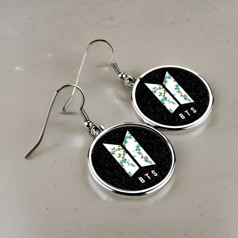 Μεταλλικά σκουλαρίκια στρογγυλά σε ασημί χρώμα BTS black, για να χαρίσεις στην καλύτερή σου φίλη!