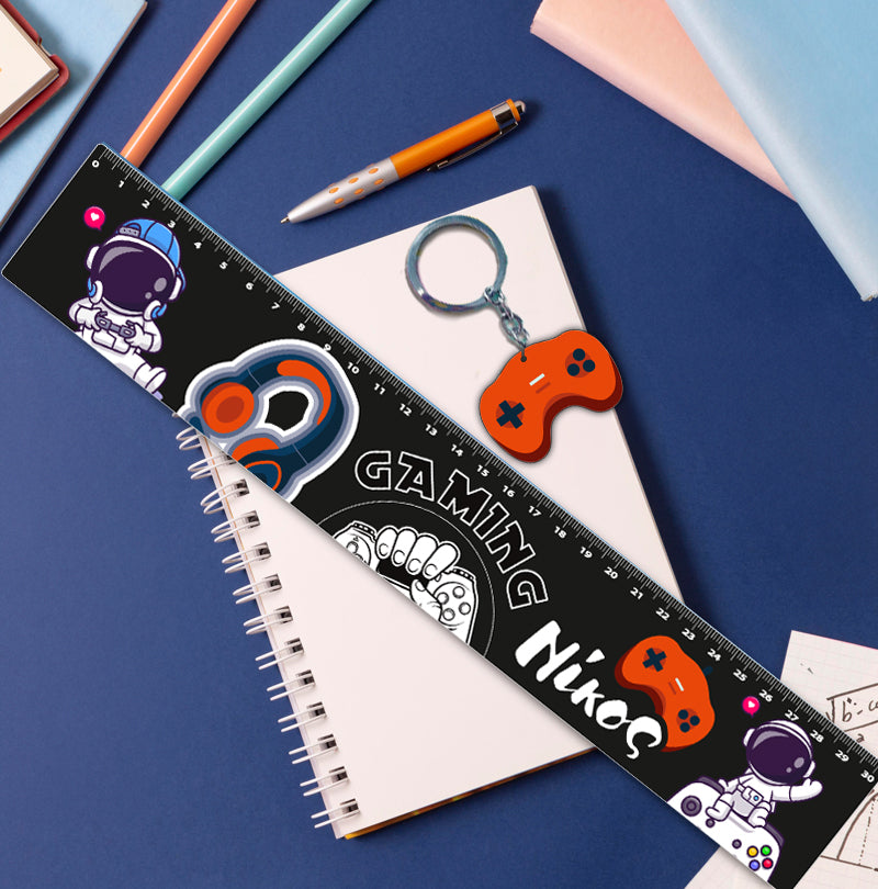 Προσωποποιημένος χάρακας Gaming με το όνομα και ασορτί μπρελόκ! To πιο τέλειο αξεσουάρ για το σχολείο ή το φροντιστήριο!